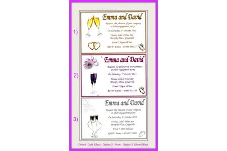 50 personalised drink tokens for your guests, size 3.82 x 8.57cms, laser printed on top quality 280gsm smooth white card Can be made up for all occasions