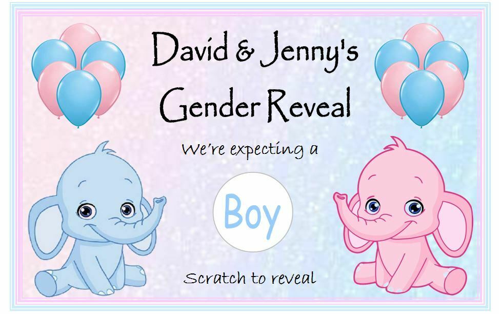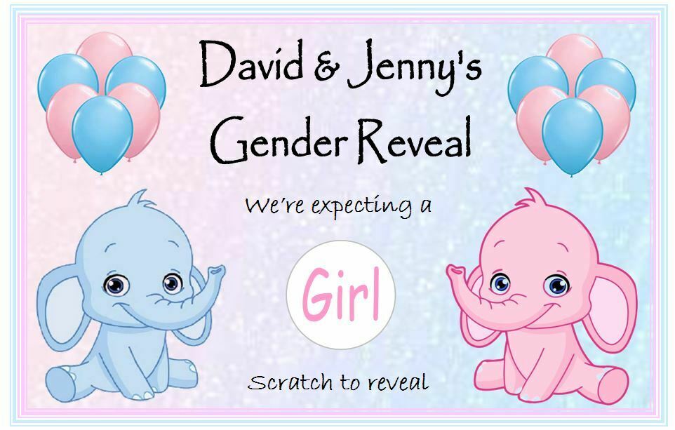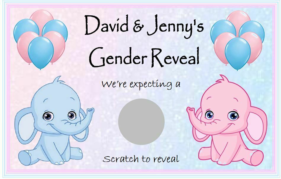 Personalised Gender Reveal Scratch Cards - With or without envelopes - Pk of 12